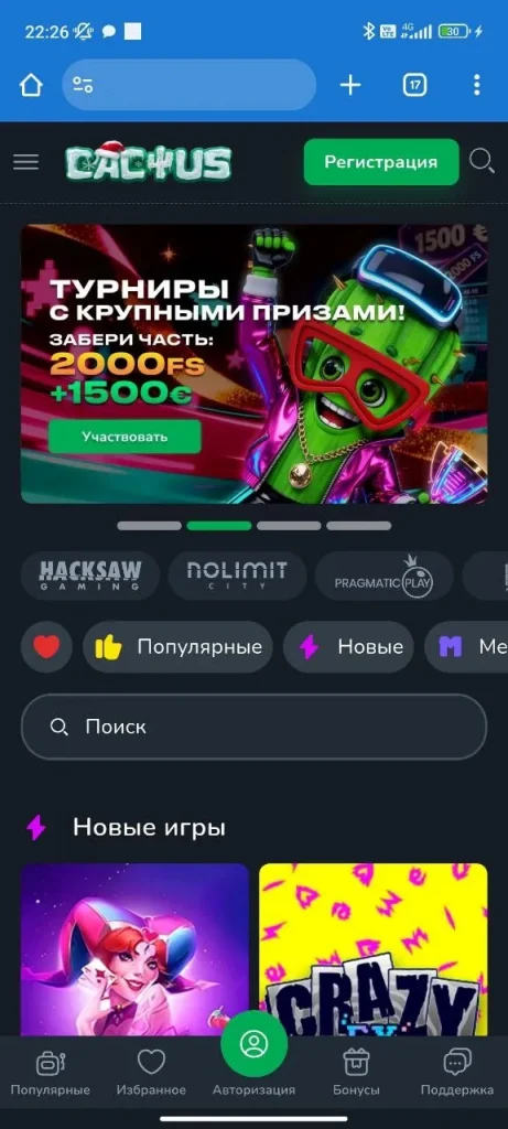Для тех, кто предпочитает играть на ходу, Cactus скачать бесплатно можно прямо с официального сайта или доверенных источников по ссылке. Мобильная версия полностью повторяет набор функций официального сайта: регистрация, депозиты, участие в акциях, запуск любых слотов и обращение в техподдержку.